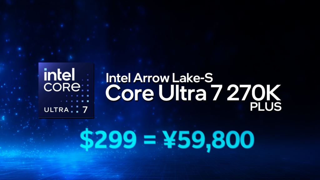 Core Ultra 7 270K Plusが国内単品発売。価格は1ドル200円換算で59,800円にIntelのCore Ultra 7 270K Plusが2026年4月3日より日本国内でパーツ単品での販売を開始しました。販売価格は59,800円で、海外定価299ドルに対して約25%のプレミアムが付... -