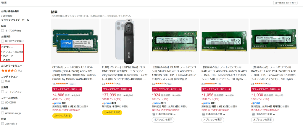 Amazonブラックフライデーセールで安くなっているメモリーはなし・・・