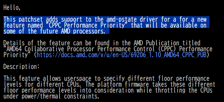 Linuxカーネルに投稿されたパッチによると、CPPC Performance PriorityはAMDのamd-pstateドライバーに追加される新機能で、Zen 6世代のRyzen(Olympic Ridgeなど)が対応する最初の製品となります。