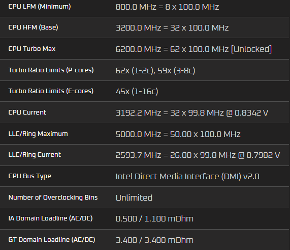 Core i9-14900KSの情報はOCCTベンチマークの結果として掲載されており、この中には詳細なCPU仕様も明らかにされています。ただ、仕様は冒頭で記載した通りCore i9の最上位モデルをベースとしており、コア構成などはCore i9-14900Kと全く同じです。しかし、動作クロックについてはブースト時が6.2 GHzとCore i9-14900Kより200 MHz高速化されています。これに伴い、TDPはCore i9-14900Kの125Wから150Wに引き上げられていますが、こちらもCore i9-13900KSと同じで驚くべき仕様ではありません。