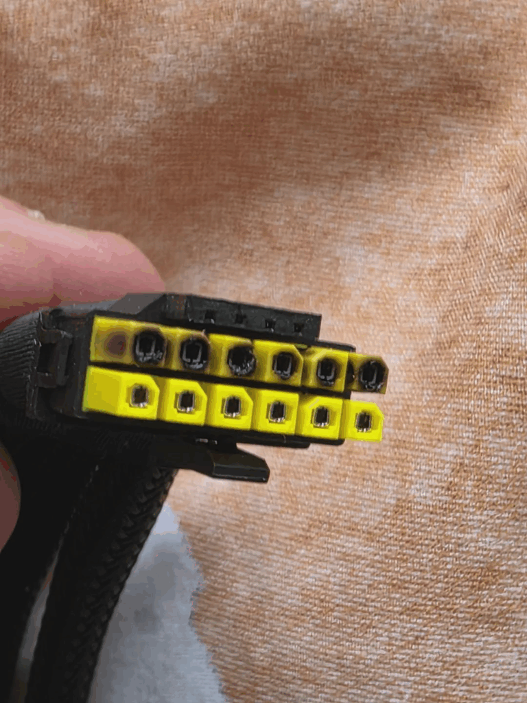 ただ、変換アダプターに関してはコネクターを完全接続していても、4本のPCIE-8ピンから12V-2x6へ変換するということから、電力の負荷が不均衡に分散してしまうと言われています。結果的に一部のピンに電力が集中し、コネクターが溶損するといった問題が発生するとされています。