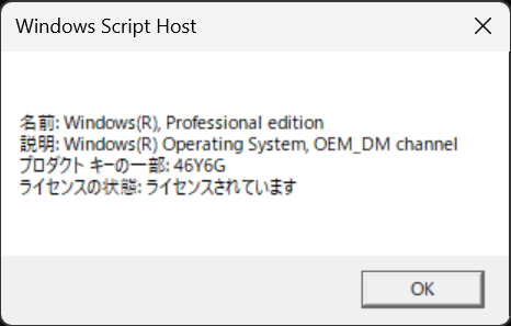 ミニPCで気になるWindowsライセンスでしが、OEMライセンスとして正規のライセンス認証がされています。