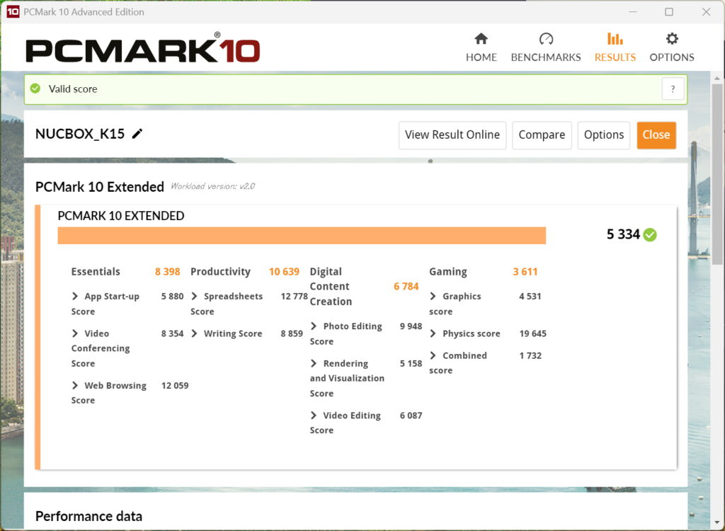 PCMark10においては合計5334ポイント記録されています。