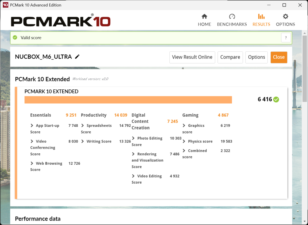 PCMark10においては合計6416ポイント記録されています。