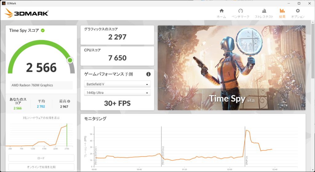 CPU性能は2023年に登場したZen 4アーキテクチャー搭載CPUではあるものの、最新鋭のCore Ultra 5 225Hにも迫る性能を有しており、動画編集やRAW画像の出力などでは比較的高い性能を発揮できると言えます。