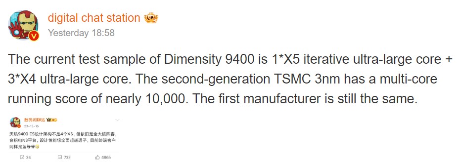 同社は2024年に投入する次世代ハイエンド向けSoCにあたるDimensity 9400でも同様の構成のCPUコアを採用する予定で、ラージコアであるCortex-X5およびCortex-X4の2種類のコアのみを採用すると言われています。
