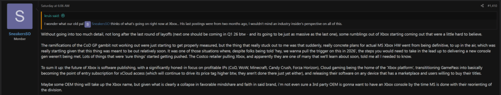 そのため、SneakersSO氏は、Microsoftが Xboxの自社開発を行わない一方で、ASUSのROG Xbox Ally XのようにOEMにXboxブランドを使ってもらい、今後も販売することも可能性として挙げています。
