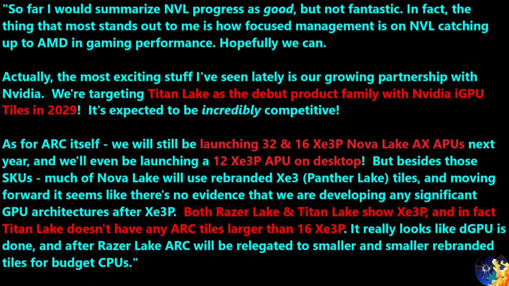 リーカーのMoore's Law is Dead氏によると、IntelはNova Lakeのデスクトップ向けについて通常版ではXe3Pアーキテクチャで構成される内蔵GPUが4基搭載されますが、これらに加え一部製品ではXe3Pを12基搭載する製品を計画しているとのことです。
