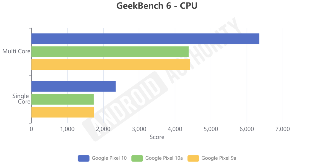 GeekBench 6のCPUスコアは9aと誤差の範囲