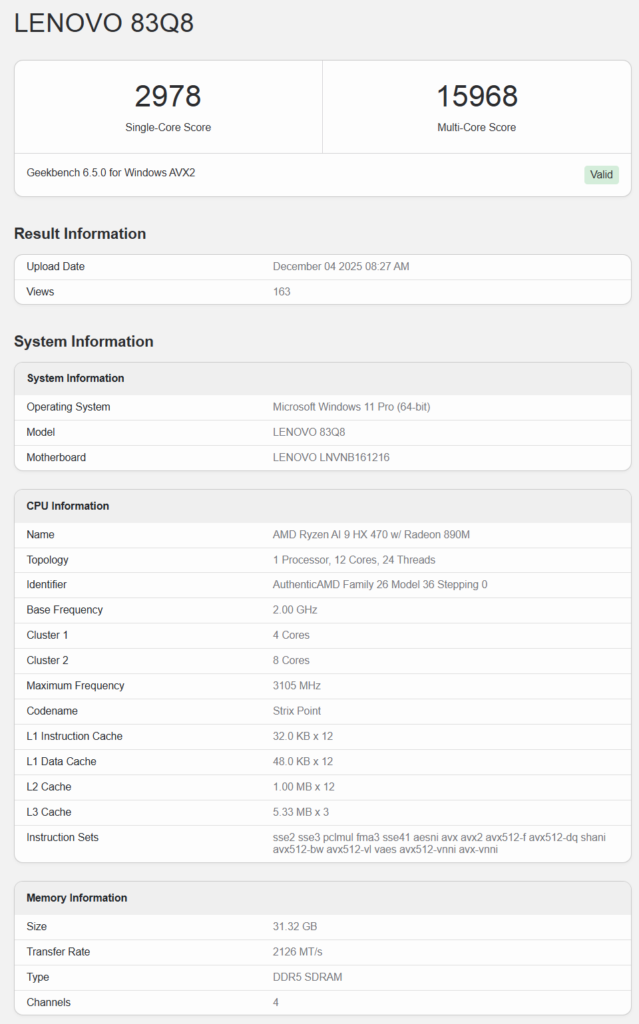 | Ryzen AI 9 HX 470 | 2,978 | 15,968 |