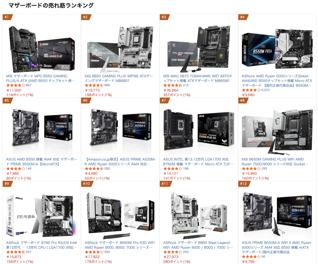 AM4マザーボードもAmazonの売れ筋ランキング1位に