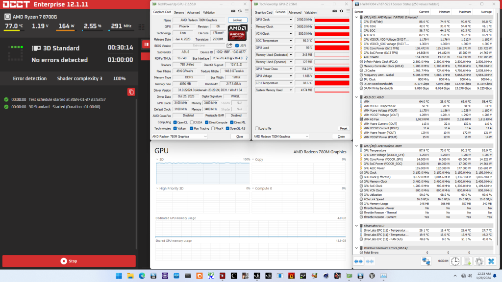 AMD Ryzen 7 8700G内蔵GPUを3.2 GHzまでオーバークロックした結果が登場。性能はGeForce GTX 1650 Ti並と定格より最大61%向上