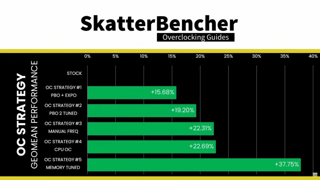このRyzen 7 8700Gのオーバークロックは5段階で行われており、1段目は基本的なPBO 2とEXPOを用いた状態、2段めが1段に対して追加でPBO 2の設定を変更、3段目が内蔵GPUの動作クロック変更、4段目がCPUのオーバークロック、5段目がメモリーオーバークロックになっています。