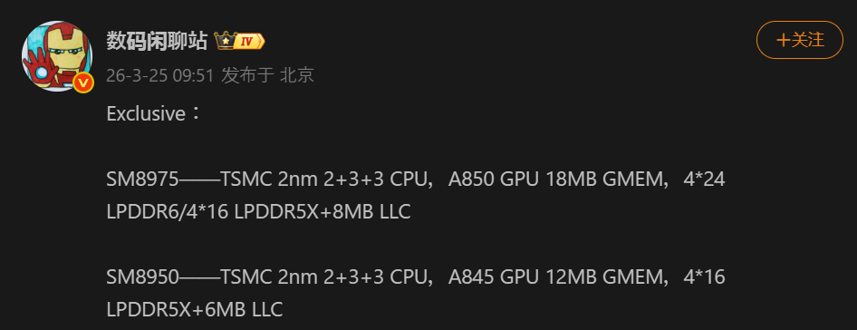 項目8 Elite Gen 6 Pro (SM8975)8 Elite Gen 6 (SM8950)